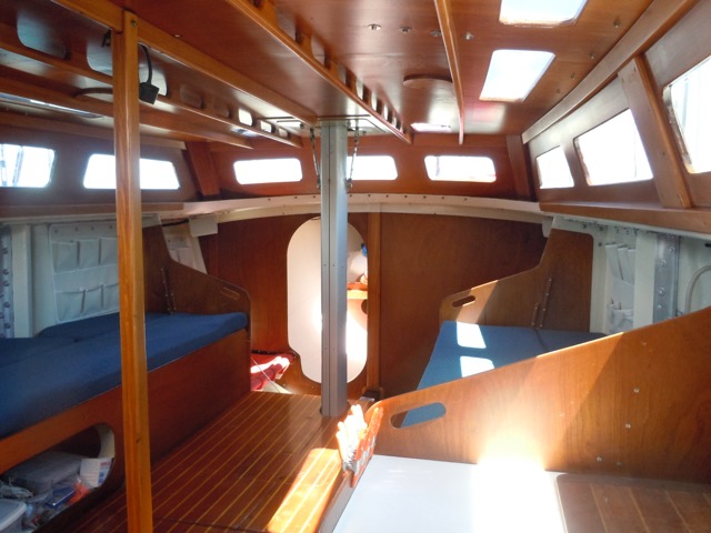 Hulls number 1, 2 & 4 differ from the rest of the production fleet with: shorter/boxier cabins, longer foredeck, no combing cockpits, and very basic cabin interior with open head area. She was designed by The Wizard (Bill Lee), really built in a chicken coop in the Santa Cruz hills. For the 2009 Transpac we celebrated Chasch Mer’s 30th year anniversary in racing. What a party! |